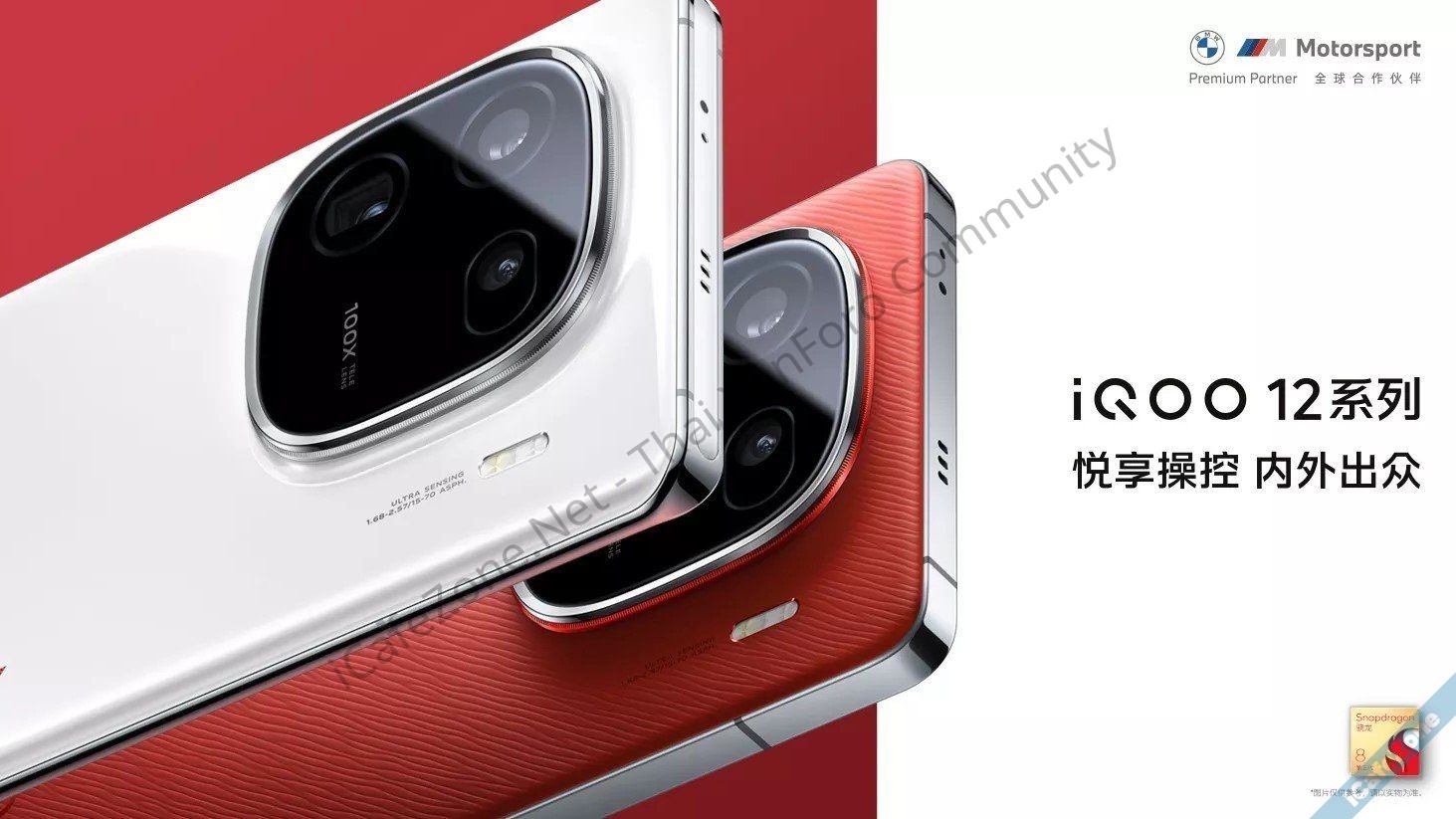 iQOO 12 และ 12 Pro เปิดให้สั่งจองที่จีนแล้ว ทั้ง 2 รุ่นมาพร้อมสีตัวเครื่องให้เลือก 3 สีเหมือนกัน ได้แก่ สีดำกระจกด้าน Track Edition, สีขาวกระจกเงา BMW Motorsport Legend Edition และสีแดงวัสดุหนัง Vegan Burning Range Edition ส่วนตลาดนอกจีนยังไม่ระบุวันเปิดตัว