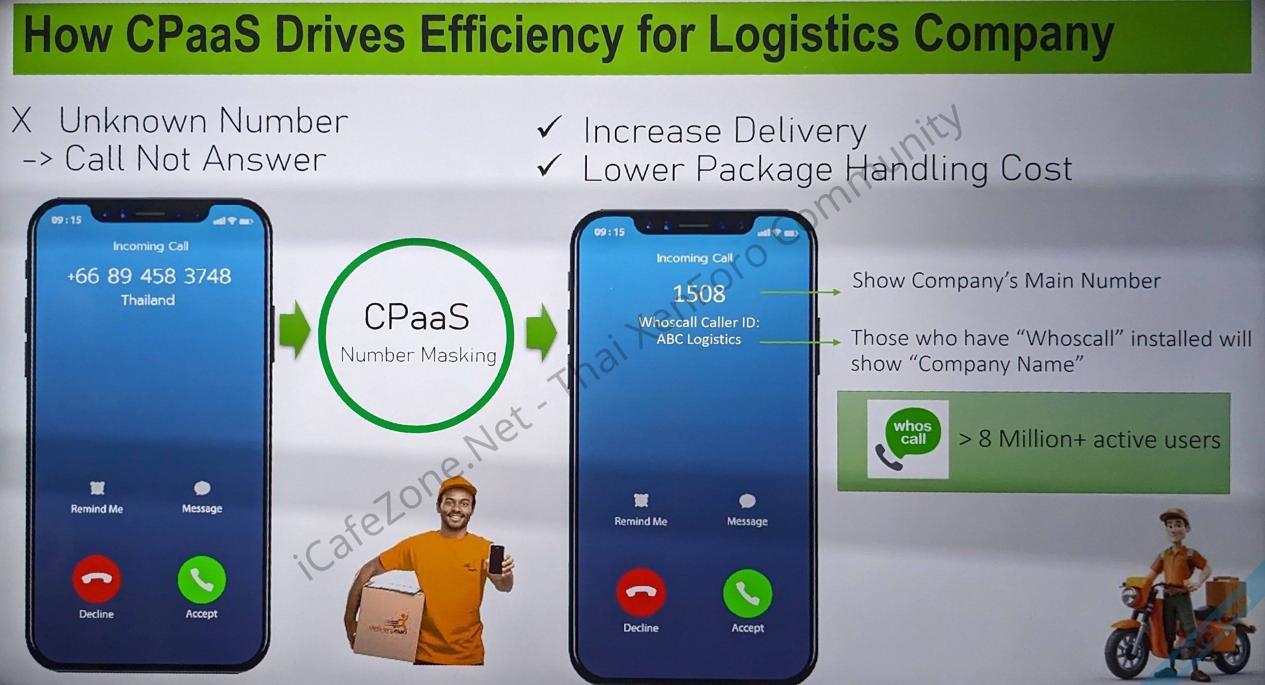 แนวทางการใช้งานที่ AIS โชว์สำหรับ CPaaS คือการใช้งานของพนักงานขนส่ง ที่สามารถเปิดให้พนักงานโทรหาลูกค้าได้โดยไม่ต้องรู้หมายเลขโทรศัพท์ ขณะที่ตัวลูกค้าเองจะเห็นหมายเลขโทรเข้าเป็นหมายเลขของบริษัทโดยตรง ลดอัตราการกดสายทิ้งเพราะนึกว่าเป็นมิจฉาชีพ ที่สำคัญคือบริการ CPaaS รองรับการโทรกลับ ในกรณีที่ลูกค้ารับสายไม่ทันก็สามารถโทรกลับเข้าเบอร์โทรศัพท์แล้วระบบจะส่งสายกลับไปยังพนักงานโดยตรงทันที