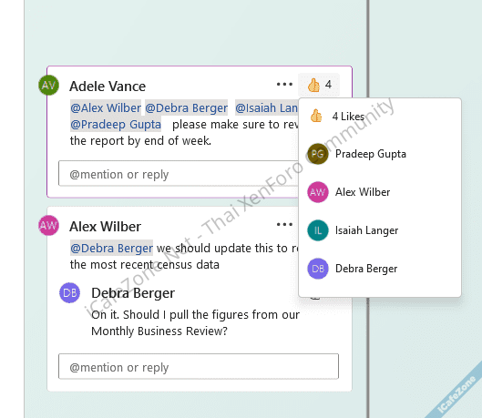 เดิมที Word รองรับการคอมเมนต์เอกสารจากเพื่อนร่วมงาน สามารถตอบคอมเมนต์เพื่อสนทนากันเรื่องสิ่งที่ต้องการแก้ไขได้ รอบนี้เพิ่มปุ่ม Like เข้ามาให้กดแสดงว่าเห็นด้วย แทนการพิมพ์ว่า +1 แบบเดิม