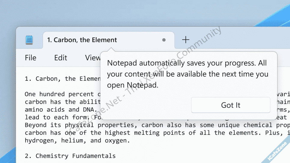 - Notepad มีการเปลี่ยนแปลงสำคัญคือ เซฟเอกสารให้อัตโนมัติเมื่อปิดแอพ ไม่ขึ้นหน้าจอมาถามว่าต้องการเซฟหรือไม่ เมื่อเราเปิด Notepad กลับมาอีกครั้งยังมีข้อความเดิมที่พิมพ์ค้างไว้ให้ ฟีเจอร์นี้อาจเป็นมาตรฐานไปแล้วสำหรับ text editor ยุคปัจจุบัน แต่เพิ่งเกิดขึ้นในแอพพื้นฐานของ Windows อย่าง Notepad