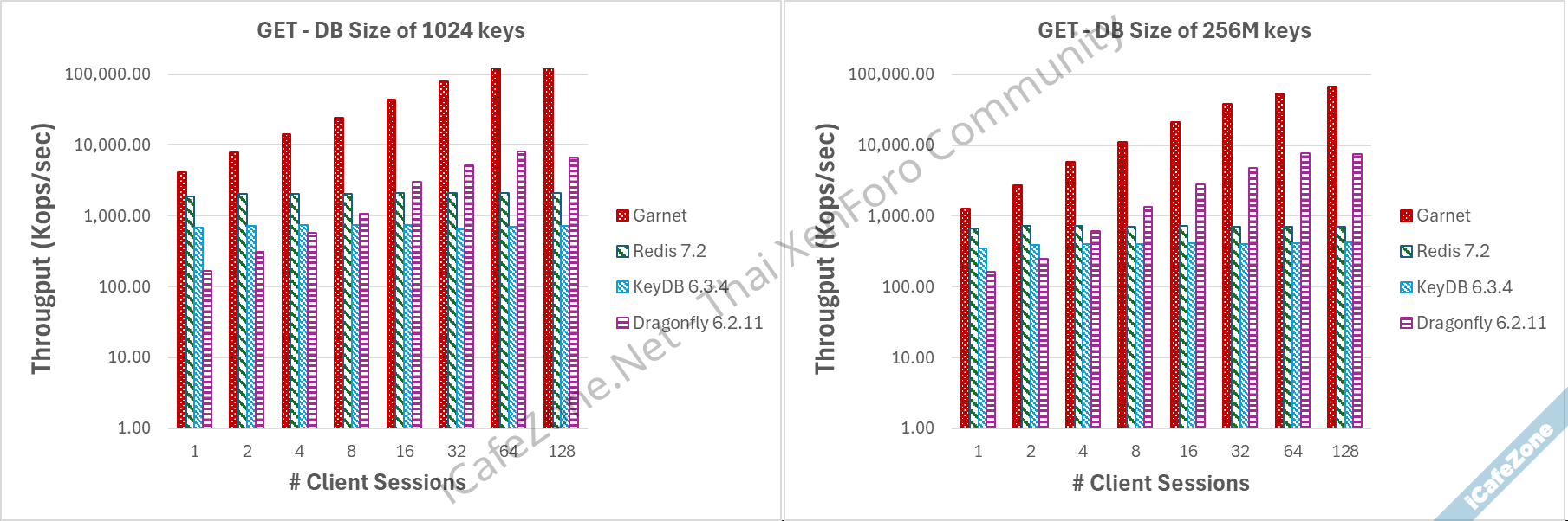 ผลทดสอบ Garnet นั้นดีกว่า Redis 7.2, KeyDB, ไปจนถึง Dragonfly โดยเฉพาะในกรณีที่ส่งคำสั่งเป็นแบตช์ใหญ่ๆ และค่า latency ก็ต่ำกว่าชัดเจน