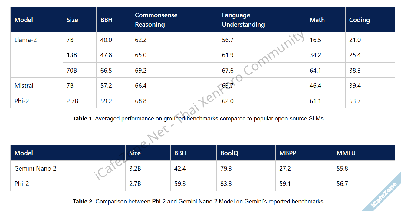 ผลออกมาว่า Phi-2 สามารถเอาชนะโมเดลที่ใหญ่กว่าได้ ทั้ง Mistral-7B, Llama-2-13B หรือแม้กระทั่ง Llama-2-70B ที่ขนาดใหญ่กว่ากันมาก คะแนนเบนช์มาร์คของ Phi-2 ยังเอาชนะโมเดลขนาดเล็กที่เพิ่งออกอย่าง Google Gemini Nano 2 ขนาด 3.2B ด้วย