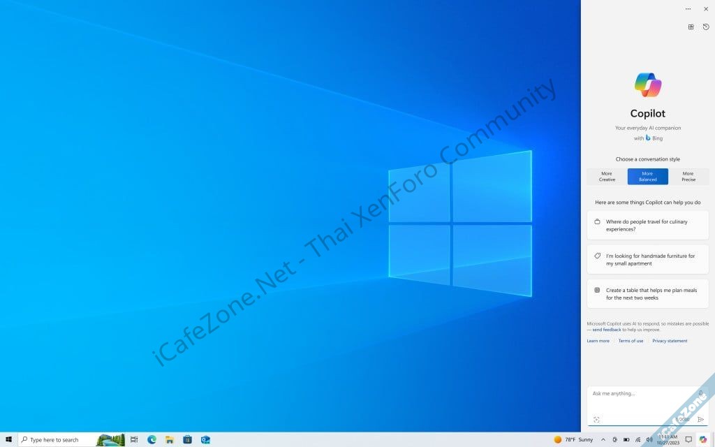 รูปแบบการใช้งาน Copilot ใน Windows 10 นั้นไม่ต่างอะไรจากบน Windows 11 นั่นคือมีแถบ sidebar ด้านขวาของเดสก์ท็อป กดแล้วพิมพ์คุยกับ Bing เอ้ย Copilot ได้ตามปกติ