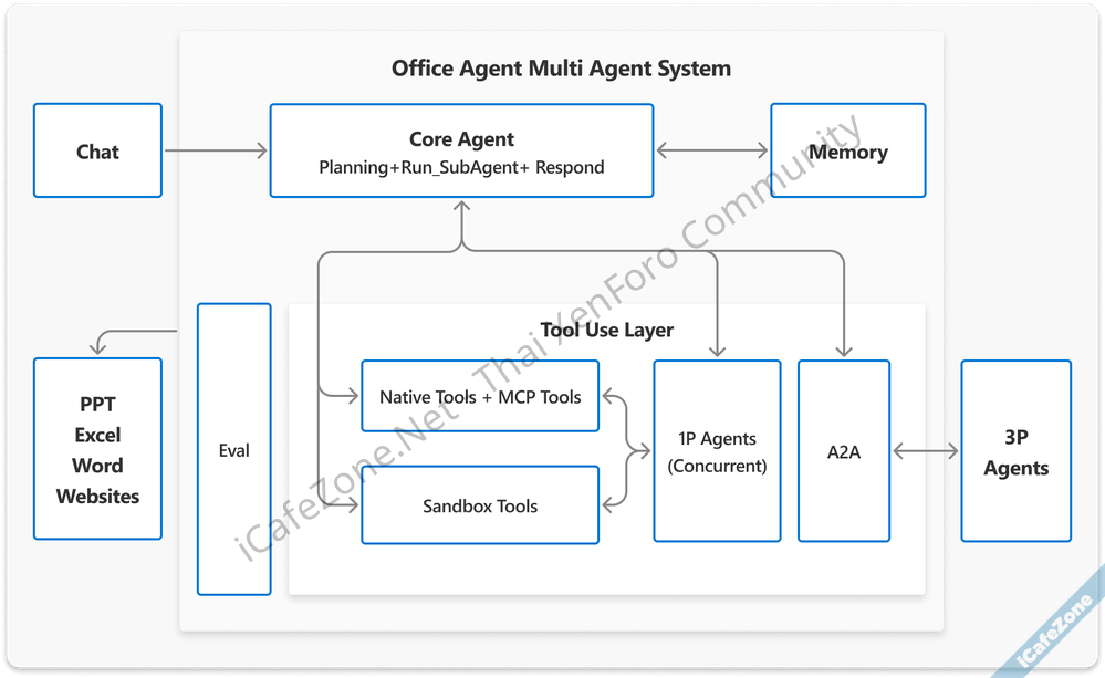 ไมโครซอฟท์อธิบายว่า Office Agent เป็นตัวอย่างของระบบ multi-agent ที่มี agent เฉพาะทางหลายๆ ตัวทำงานต่างๆ แล้วนำมาประกอบร่างกัน ภายใต้แนวทางที่เรียกว่า Taste-Driven Development (TDD) ทำให้งานเอกสารที่สร้างออกมาเนี้ยบ มีรสนิยม (taste) ดีจากคลังเอกสารคุณภาพสูงที่ไมโครซอฟท์สะสมไว้นานแล้ว เอกสารแต่ละหน้ามีความสม่ำเสมอในแง่สไตล์ ไม่ต้องมาแก้ใหม่