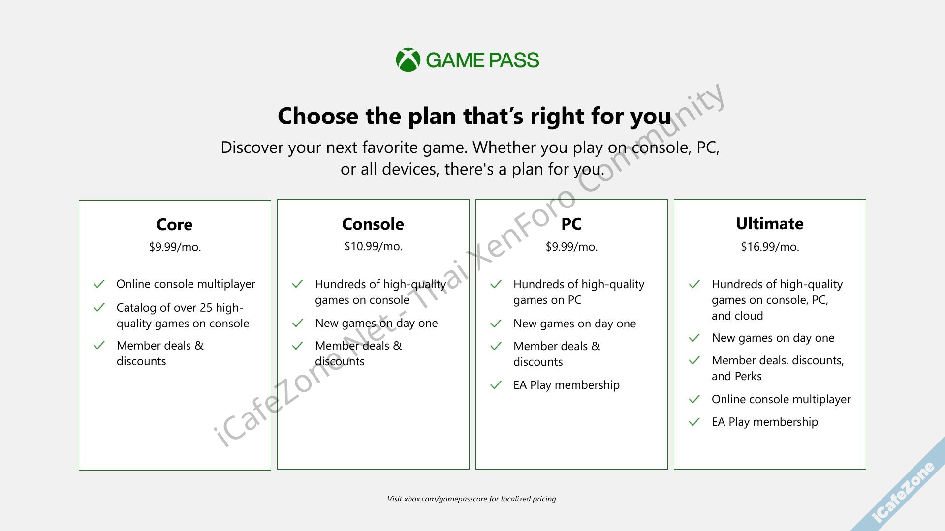 การเปลี่ยนจาก Xbox Live Gold มาเป็น Xbox Game Pass Core ทำให้ตอนนี้ Game Pass มีแพ็กเกจทั้งหมด 4 แบบตามภาพ ได้แก่
