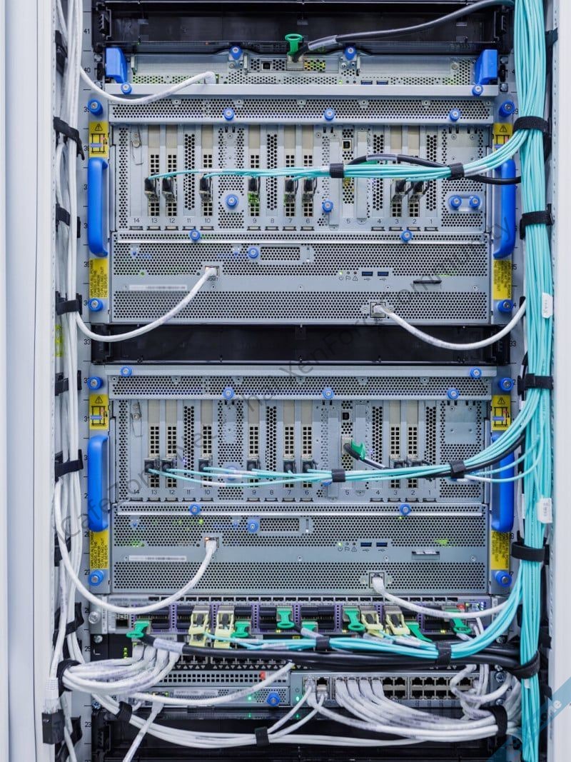 ตัวแกนของเทคโนโลยีเชื่อมต่อความเร็วสูงคือ InfiniBand ของ NVIDIA (จากการซื้อ Mellanox ในปี 2019) แต่ NVIDIA เองก็ไม่เคยนำจีพียูจำนวนเยอะขนาดนี้มาต่อกัน ทำให้ไม่มีใครรู้ว่าข้อจำกัดของเทคโนโลยีเชื่อมต่อเป็นไปได้แค่ไหน