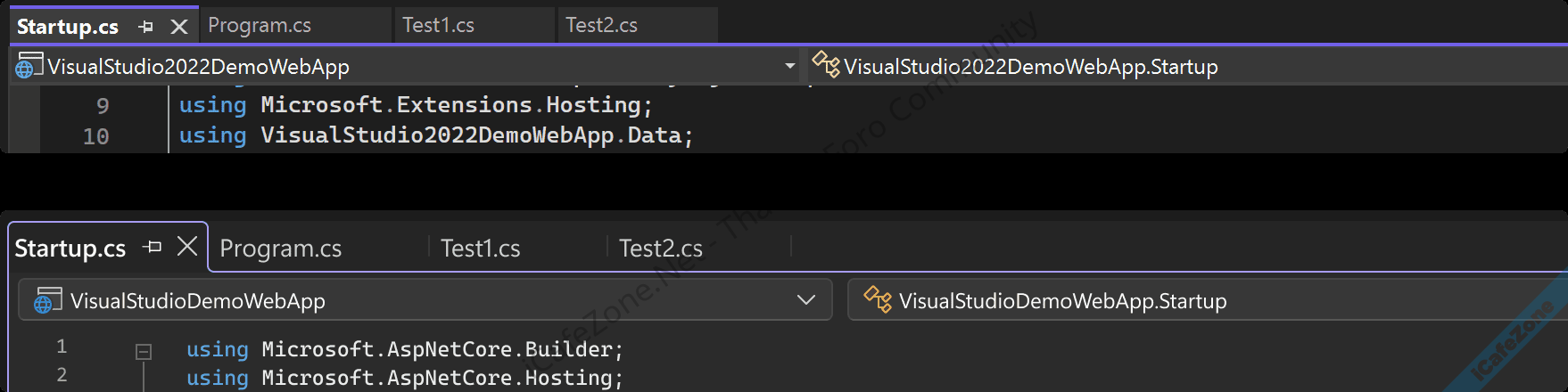 หน้าตาใหม่ของ Visual Studio ไม่เปลี่ยนไปจากเวอร์ชันปัจจุบันเท่าไรนัก (ดูไกลๆ แทบแยกไม่ออก) จุดต่างอยู่ในรายละเอียดเรื่องสีของไอคอน พื้นหลัง เส้นขอบ ที่ตัดกันมากกว่าเดิม ลดการใช้เส้นขอบลงเพื่อไม่ให้รก, เพิ่มระยะห่างระหว่างปุ่ม-เมนูให้กดง่ายขึ้น, หน้าตาของแท็บเปลี่ยนไป