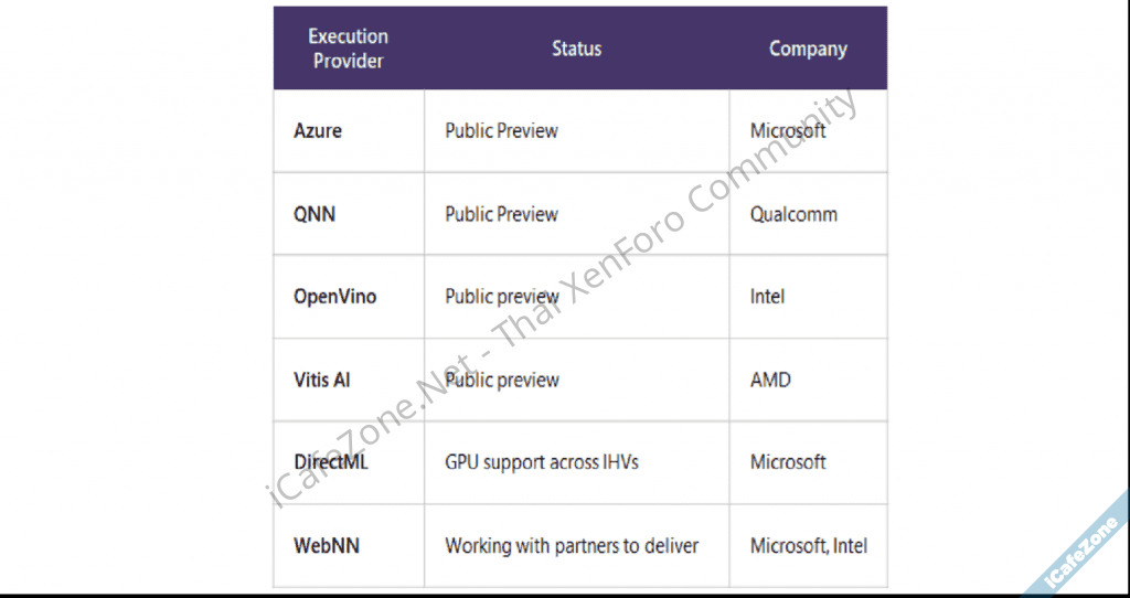 การรันโมเดลบนวินโดวส์ ยังสามารถใช้ประโยชน์จากฟีเจอร์เร่งการประมวลผล AI ในซีพียู จีพียู หรือ NPU ได้ด้วย ซึ่งไมโครซอฟท์ก็ประกาศความร่วมมือกับผู้ผลิตฮาร์ดแวร์ 3 รายคือ AMD (ซีพียู Ryzen บางรุ่น), NVIDIA (Tensor Core ในการ์ด RTX), Qualcomm (NPU ใน Snapdragon 8cx Gen 3) ให้รองรับฟีเจอร์นี้แล้ว