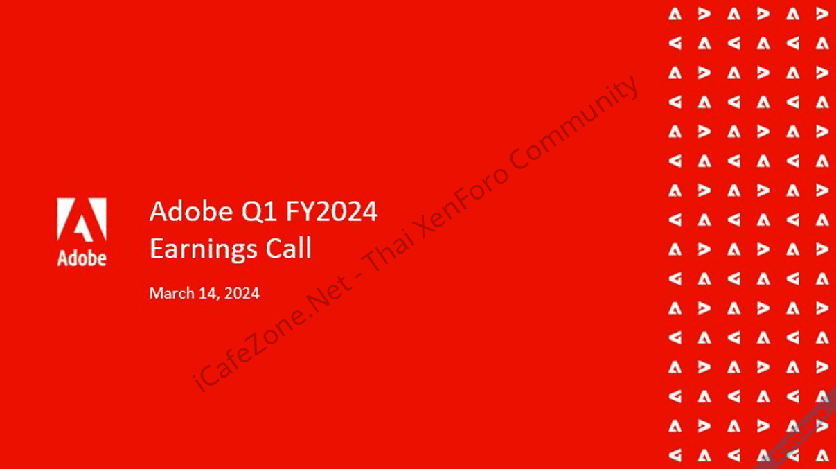 Adobe รายงานผลประกอบการของไตรมาสที่ 1 ตามปีการเงินบริษัท 2024 สิ้นสุดวันที่ 1 มีนาคม รายได้ยังคงเติบโตทำสถิติใหม่สูงสุดอีกครั้งที่ 5,182 ล้านดอลลาร์ เพิ่มขึ้น 11% เมื่อเทียบกับไตรมาสเดียวกันในปีก่อน มีกำไรสุทธิตามบัญชี GAAP 620 ล้านดอลลาร์