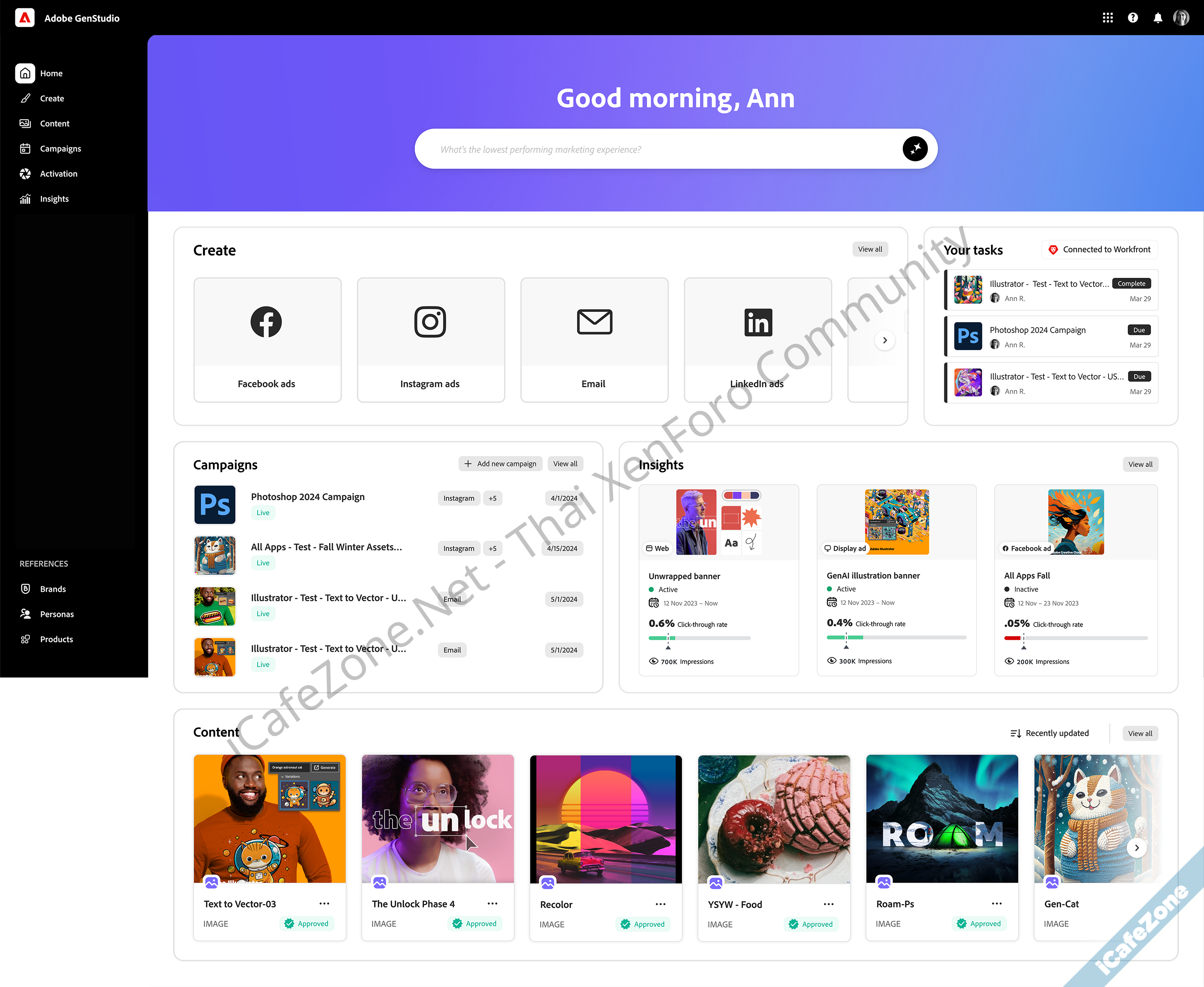 เครื่องมือที่มีใน Adobe GenStudio ครอบคลุมขั้นตอนการผลิตคอนเทนต์ของแบรนด์ ตั้งแต่ การวางแผนแคมเปญ, การอนุมัติส่วนของงาน, เครื่องมือแต่งภาพทั้ง Express และ Firefly ที่รักษาโทนของแบรนด์ ไปจนถึงเครื่องมือ Analytics ประเมินผลของแคมเปญนั้น