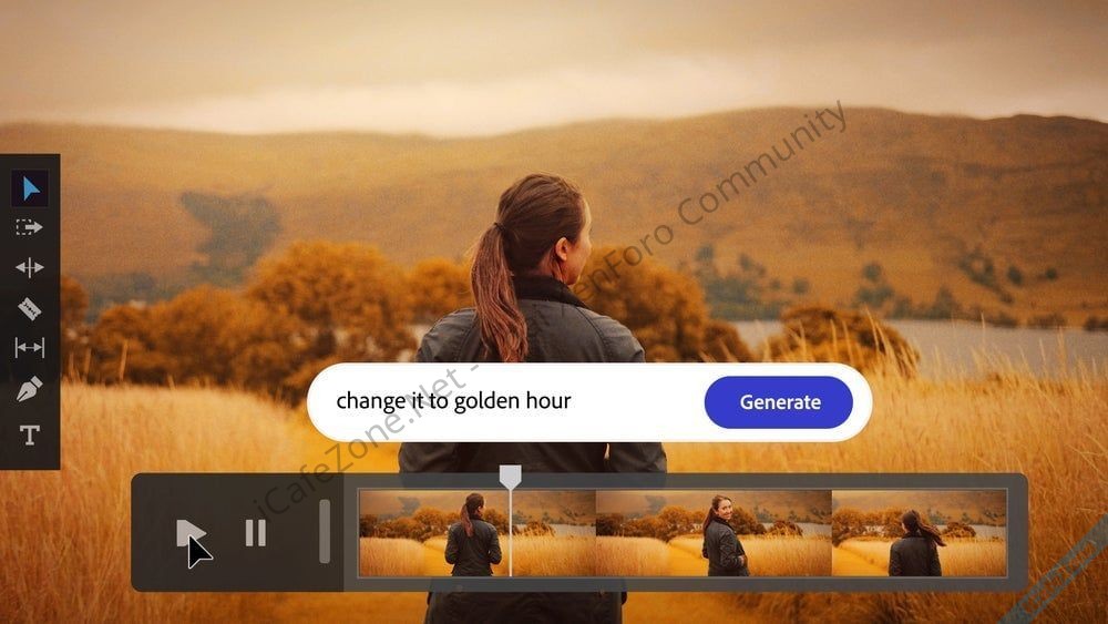 คราวนี้ Firefly เวอร์ชันวิดีโอทำงานลักษณะเดียวกัน คือ ค้นหาคลิปจากคลังวิดีโอของ Adobe Stock มาใส่ข้อความแอนิเมชัน เอฟเฟคต์ ปรับแต่งสี ใส่เสียงประกอบ ฯลฯ ผู้ใช้งานสามารถพิมพ์สั่งที่ prompt ให้เปลี่ยนโทนสีของคลิป (change it to golden hour) หรือเลือกเพลงประกอบในโทนสดใสได้