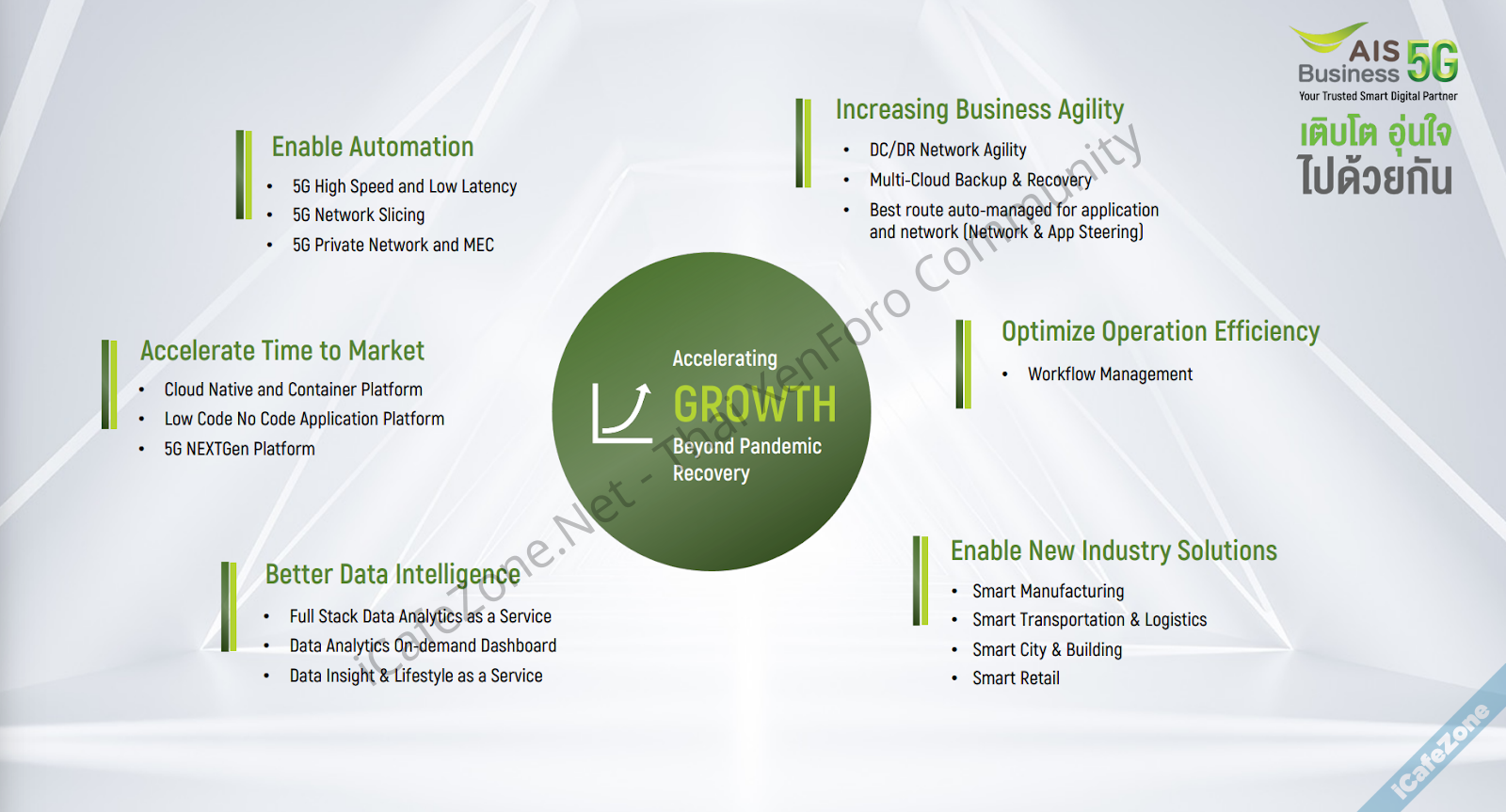 - Growth: Accelerating Growth Beyond Pandemic Recovery เร่งการเติบโตของธุรกิจโดยการสร้างขีดความสามารถใหม่ๆ ด้วยเครื่องมือทางดิจิทัล