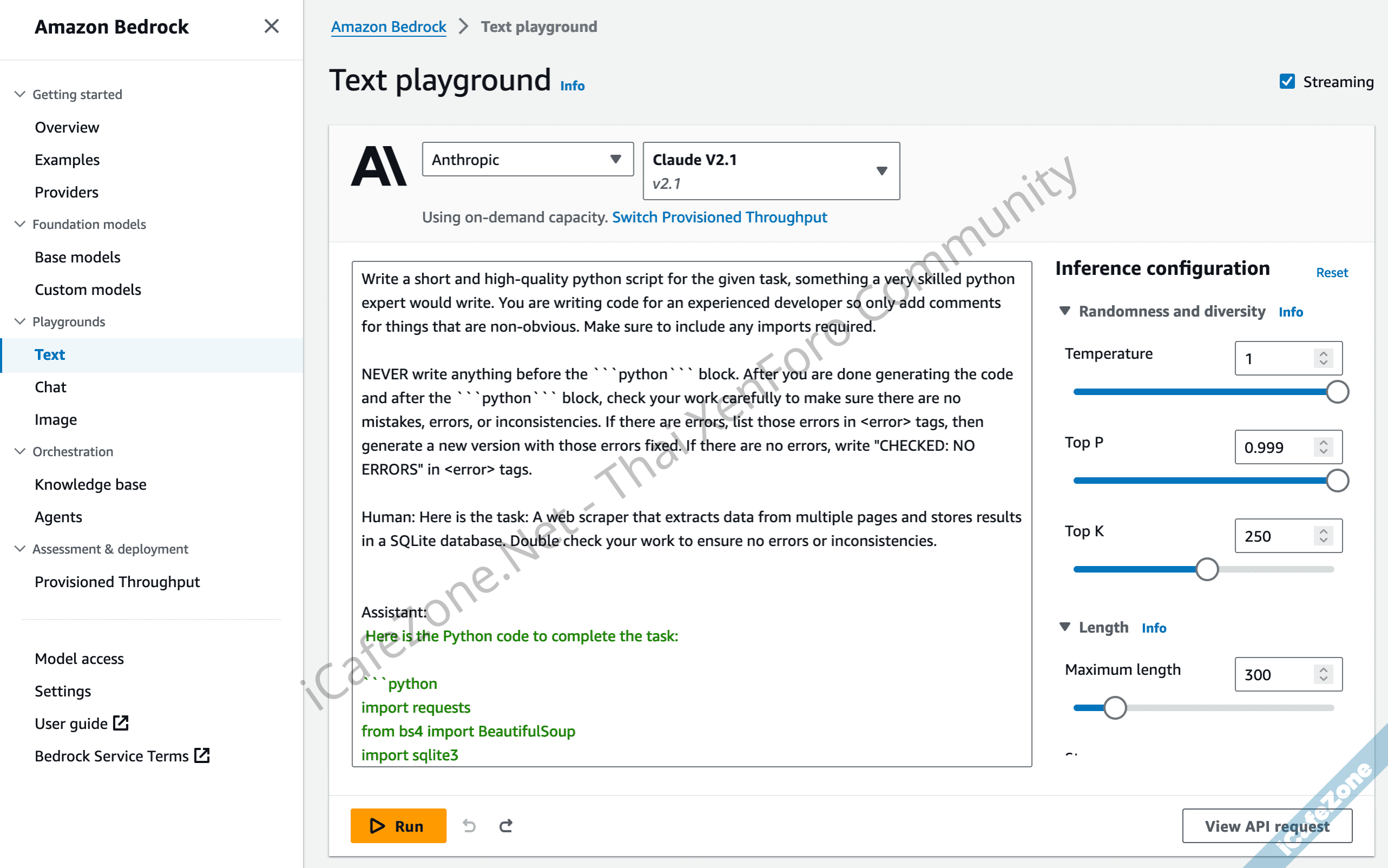 AWS มีบริการ Generative AI ใต้ชื่อแบรนด์ Amazon Bedrock เริ่มมาตั้งแต่เดือนเมษายน โดยมีโมเดลให้เลือกหลากหลายยี่ห้อ เช่น Stable Diffusion, Llama 2 รวมถึงโมเดลของ AWS เองที่ชื่อตระกูล Amazon Titan