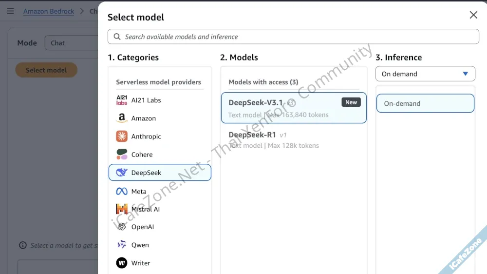 ส่วน DeepSeek นั้นเดิม Bedrock มีให้บริการ DeepSeek-R1 โมเดลกลุ่ม reasoning อยู่ก่อนแล้ว ตอนนี้ขยายมายัง DeepSeek-V3.1 โมเดลสายหลักตัวล่าสุด ด้วย