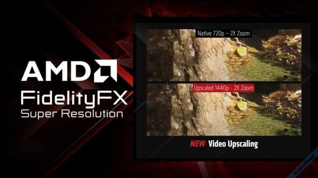 ล่าสุดมีข่าวว่าฝั่งของค่าย AMD กำลังพัฒนาฟีเจอร์แบบเดียวกันในชื่อ FidelityFX Super Resolution โดยโชว์การใช้จีพียูอัพสเกลภาพจาก 720p เป็น 1440p แล้วภาพไม่แตกด้วย