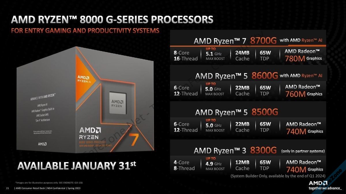 สินค้าเริ่มวางขาย 31 มกราคม 2024 และกลุ่มผู้ผลิต OEM จะวางขายพีซีที่ใช้ Ryzen 8000G ในช่วงไตรมาส 2/2024