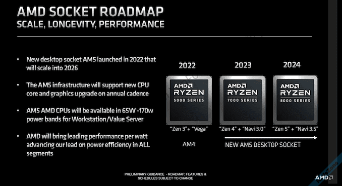 - ซ็อคเก็ต AM5 จะใช้กับทั้งซีพียูเวิร์คสเตชัน และซีพียูเซิร์ฟเวอร์ระดับล่างด้วย โดยเป็นซีพียูกลุ่มที่ใช้กำลังไฟ 65-170W