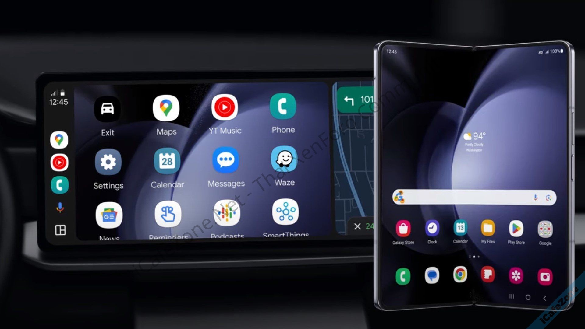 กูเกิลเปิดตัวฟีเจอร์เล็กๆ ของ Android Auto พร้อมงานแถลงข่าว Galaxy S24 เมื่อคืนนี้ โดยหน้าจอแสดงผลของ Android Auto ในรถยนต์จะปรับภาพพื้นหลังและไอคอนให้เหมือนกับสมาร์ทโฟนที่มาเชื่อมต่อด้วย ตอนนี้บอกว่ารองรับเฉพาะสมาร์ทโฟนที่เป็น Samsung Galaxy เท่านั้น