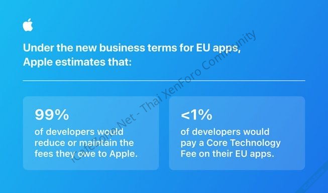 ไฮไลท์ของประกาศนี้คือเพิ่มค่าธรรมเนียมตัวใหม่ เรียกชื่อว่า Core Technology Fee โดยเก็บเงินจากนักพัฒนา หากแอปนั้นถูกดาวน์โหลดไม่ว่าจาก App Store ของแอปเปิล หรือสโตร์ภายนอกรวมกัน มากกว่า 1 ล้านครั้งในระยะเวลา 12 เดือน (นับเฉพาะการดาวน์โหลดใหม่ต่อบัญชี ดาวน์โหลดซ้ำไม่นับ) คิดค่าธรรมเนียมนี้ที่ 0.5 ยูโร ต่อการดาวน์โหลด ส่วนที่เกินจาก 1 ล้านครั้งแรก