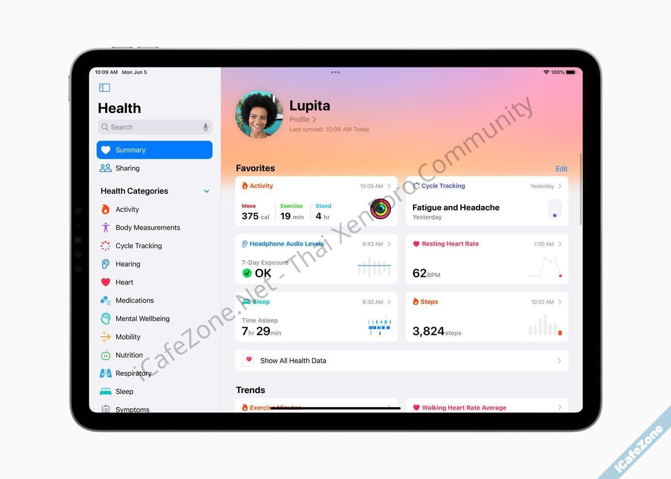 แอปสุขภาพบน iPad สามารถดูข้อมูลจาก iPad, iPhone, Apple Watch รวมถึงอุปกรณ์อื่นที่ใช้งานร่วมกันได้