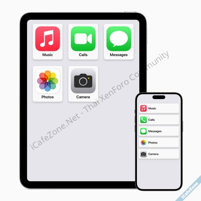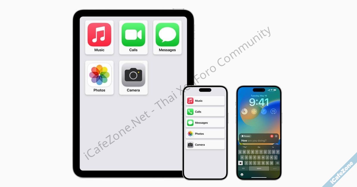 - Assistive Access ช่วยเหลือการรับรู้ โดยปรับปรุงอินเทอร์เฟซ เช่น ปุ่มที่คอนทราสต์สูง อักษรตัวใหญ่ คีย์บอร์ดที่มีแต่อีโมจิ ลดภาระการรับรู้ทำให้ใช้งานได้ง่ายขึ้น