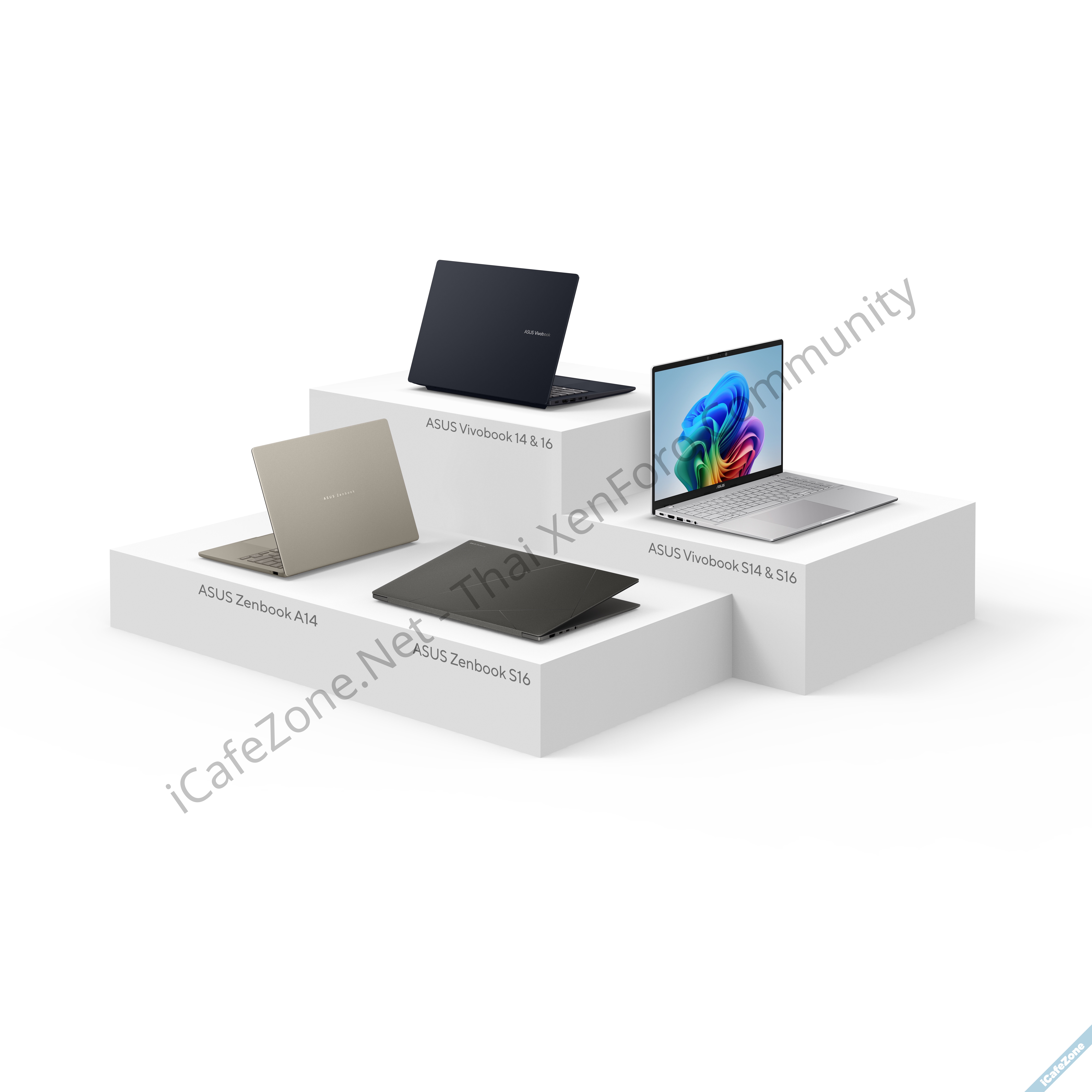สำหรับ Vivobook 14/16, Vivobook S14/S16, และ Zenbook A14 ทำงานโปรเซสเซอร์ใหม่ Snapdragon X และ X Elite ประมวลผล AI สูงสุด 45 TOPS และอายุการใช้งานแบตเตอรี่ที่ยาวนานขึ้น เหมาะสำหรับการทำงานมัลติทาสก์ โดยรายละเอียดของแต่ละรุ่นเป็นดังนี้: