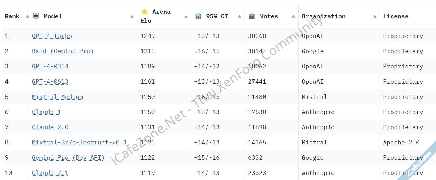 LMSYS ผู้จัดอันดับแชตบอทโดยอาศัย Chatbot Arena เป็นการ "ต่อสู้" ระหว่างแชตบอทสองตัวให้ตอบคำถามเดียวกันแล้วให้ผู้ใช้เลือกว่าชอบคำตอบฝั่งใด รายงานผลรอบล่าสุดวันที่ 26 มกราคม 2024 และพบว่า Bard รุ่นที่ใช้ Gemini Pro นั้นแซงหน้า GPT-4 ขึ้นมาเป็นรองเพียง GPT-4 Turbo เท่านั้น