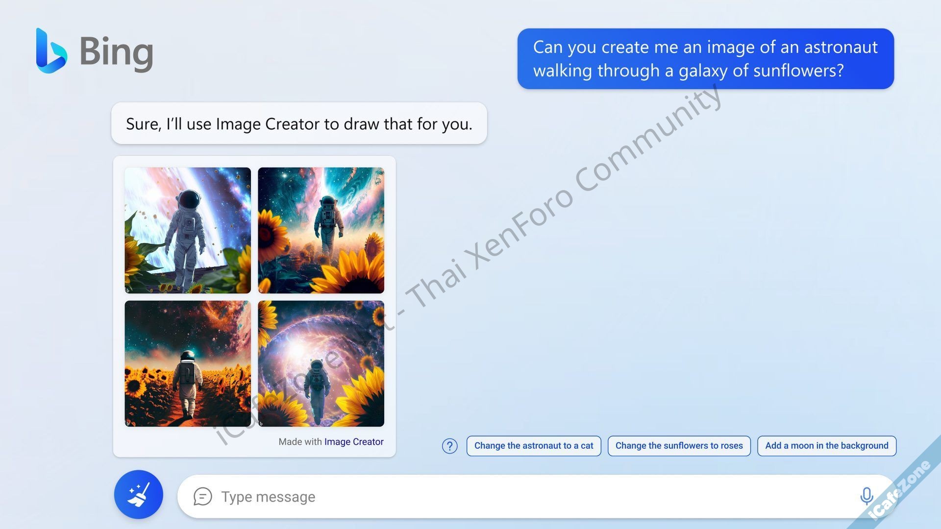 ไมโครซอฟท์ประกาศเพิ่มความสามารถใหม่ด้าน AI ให้กับ Bing โดยคราวนี้เป็นเครื่องมือสร้างสรรค์รูปภาพ Bing Image Creator ซึ่งใช้โมเดลสร้างรูปภาพของ DALL∙E ที่ผู้ใช้งานป้อนข้อความบรรยายรายละเอียดภาพที่ต้องการ จากนั้น Image Creator จะสร้างรูปภาพออกมาตามคำบรรยายนั้น