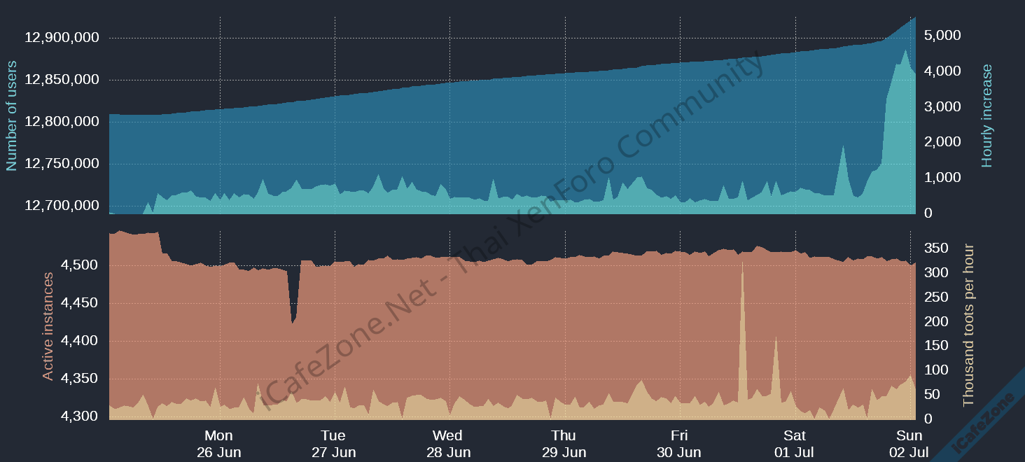 แพลตฟอร์มโซเชียล Mastodon ก็มีจำนวนผู้สมัครใช้งานเพิ่มขึ้นสูงจากเหตุการณ์นี้เช่นกัน บัญชี @mastodonusercount รายงานตัวเลขล่าสุดมีผู้สมัครใหม่มากกว่า 4 หมื่นบัญชี ในช่วง 1 วันที่ผ่านมา