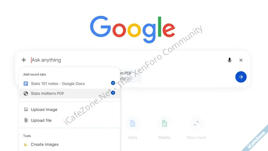 - AI Mode สามารถค้นหาและสรุปข้อมูลเฉพาะบางแท็บที่เปิดไว้ วิธีใช้งานคือกดปุ่ม + หน้ากล่อง search แล้วเลือกเฉพาะแท็บที่ต้องการได้ (เลือกผสมกับอย่างอื่นด้วยก็ได้ เช่น รูปภาพ ไฟล์)
