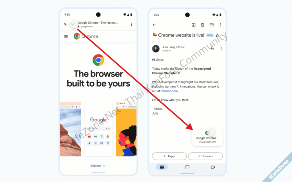 ฟีเจอร์นี้ออกแบบมาสำหรับ Custom Tabs หรือการใช้เอนจิน Chrome เปิดลิงก์จากแอพตัวอื่น เช่น กดเปิดลิงก์จากอีเมล จากนั้นเราจะเห็นหน้าเว็บถูกเปิดขึ้นมาเต็มจอในแอพอีเมล ซึ่งมีปัญหาว่าบังทั้งจอ สลับกลับไปอ่านเนื้อหาอีเมลได้ยาก (ปัจจุบันต้องปิดหน้าเว็บเพื่อกลับไปอ่านเมล) กูเกิลจึงเปิดทางให้ "ย่อ" แท็บที่เปิดอันนี้ให้เล็กลงได้ ย้ายตำแหน่งไปมาได้ ช่วยให้การ multi-tasking คล่องตัวมากขึ้น