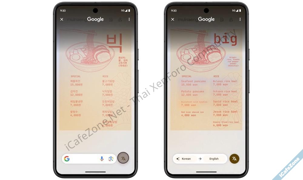 ฟีเจอร์ Circle to Search ออกแบบมาเพื่อแก้ปัญหานี้ ตัวอย่างการใช้งานคือเข้าหน้าเว็บร้านอาหาร ที่มีภาพเมนูในภาษาต่างประเทศ สิ่งที่ต้องทำมีเพียงกดปุ่ม Home ค้างเพื่อเรียก Google to Search ขึ้นมา มีปุ่มแปลภาษาเข้ามาใหม่ด้านล่าง กดแล้วแปลสิ่งที่อยู่บนจอได้ทันที