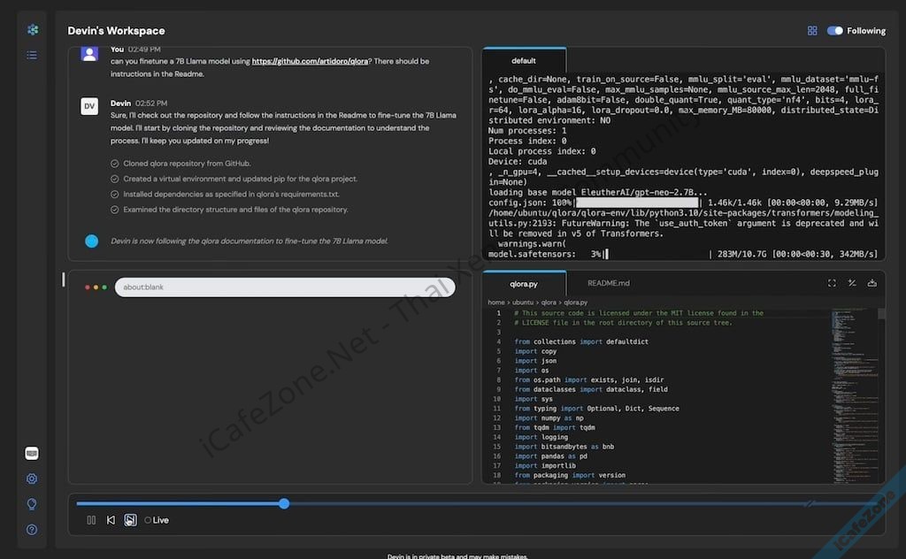 Cognition Labs สตาร์ตอัพปัญญาประดิษฐ์เปิดตัว Devin ปัญญาประดิษฐ์แบบ agent ที่วางแผนการทำงาน จากนั้นเขียนโค้ด, ดูผลลัพธ์, และแก้ปัญหาได้ในตัวเองจนกว่างานจะเสร็จ