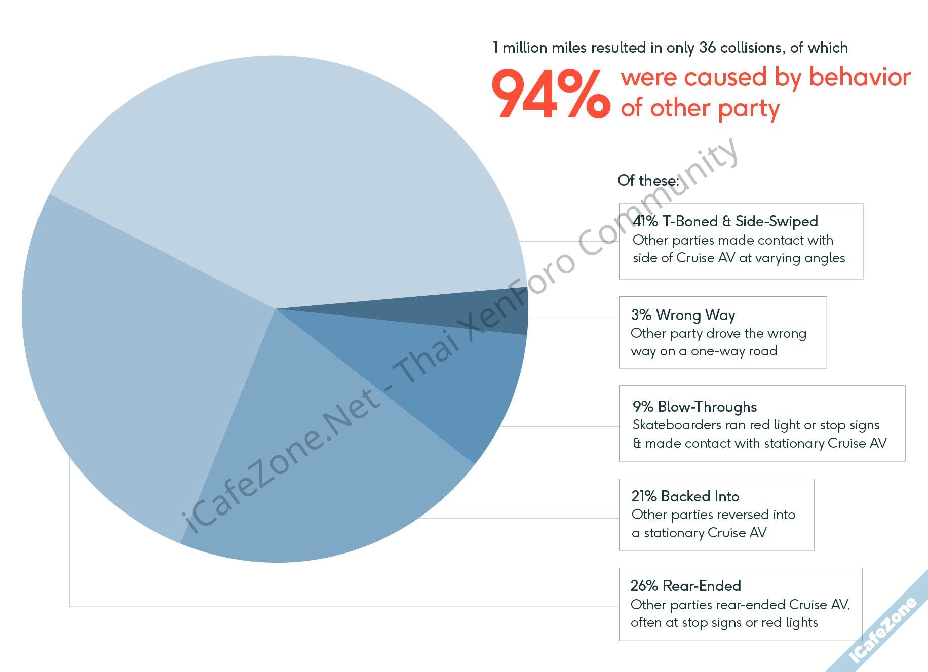 - มีการชน เฉพาะที่ Cruise เป็นฝ่ายทำให้เกิดการชน (primary contributor) น้อยกว่ามนุษย์ 92%