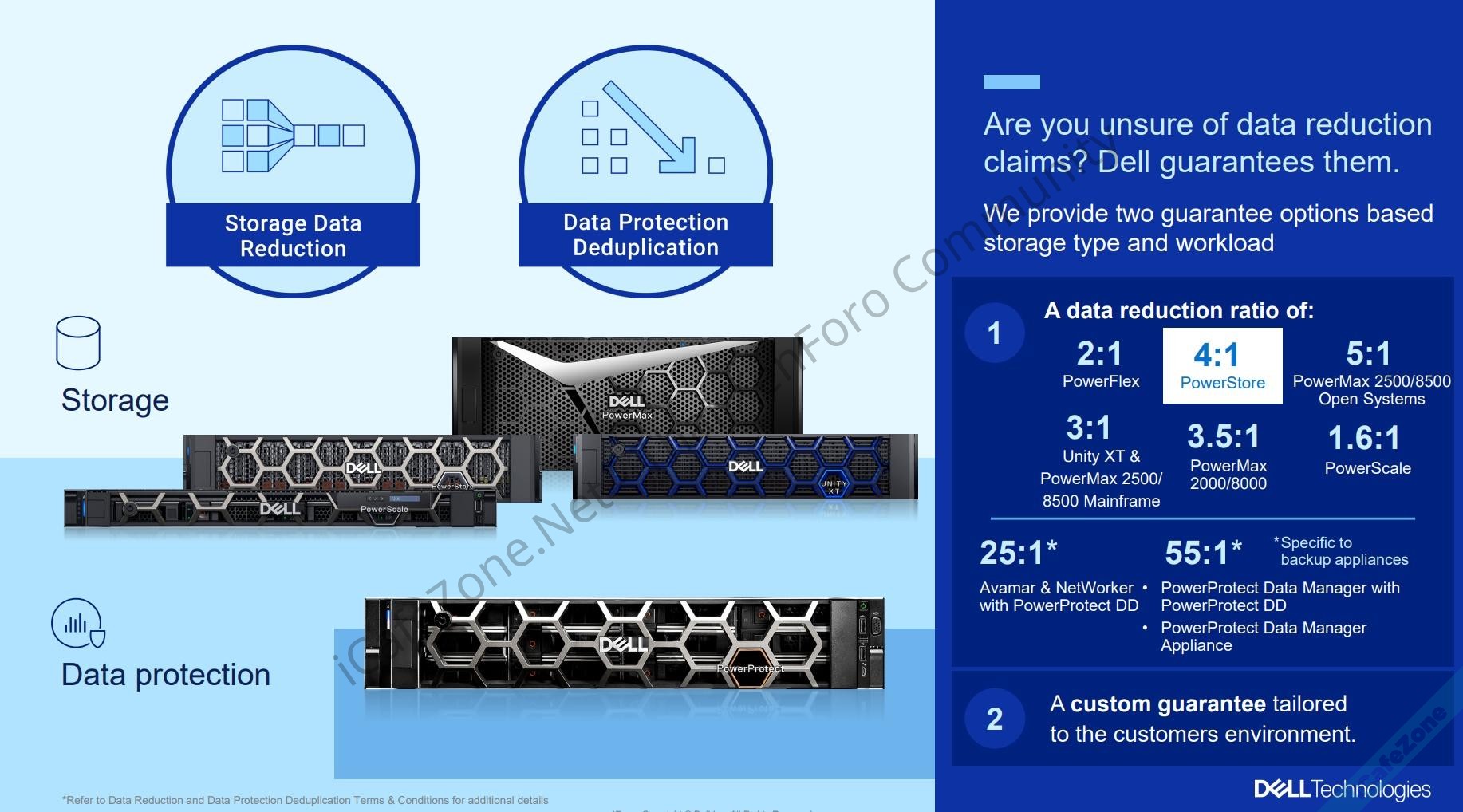 สำหรับพื้นที่จัดเก็บข้อมูล PowerStore มีหน่วยประมวลผลเฉพาะสำหรับการบีบอัดข้อมูล ถึงระดับ 4:1 พร้อมกับรับประกันว่าจะได้ตามที่สัญญาไว้จริง โดยต้องการเพียงข้อมูลประเภทข้อมูลที่ใช้งานเท่านั้น ไม่ต้องผ่านกระบวนการตรวจสอบข้อมูลที่ใช้งานในสตอเรจล่วงหน้าให้ยุ่งยาก และแม้จะรับประกันเช่นนี้ ทาง Dell Technologies ก็ยังระบุว่ามีลูกค้าที่ข้อมูลซับซ้อนจนไม่สามารถบีบอัดได้ถึงสัดส่วนที่สัญญาจริงๆ เพียงไม่ถึง 1% เท่านั้น แนวทางเหล่านี้จะทำให้ธุรกิจองค์กรสามารถมั่นใจได้ในการใช้งาน Dell PowerStore ในระยะยาว และสอดคล้องกับทิศทางของเป้าหมายขององค์กรในด้าน Sustainability ที่จะช่วยลดการใช้พลังงานของศูนย์คอมพิวเตอร์ รวมไปถึงจะสามารถรองรับการจัดเก็บข้อมูลในปริมาณที่ธุรกิจต้องการได้แม้จะมีการเติบโตของข้อมูลในอนาคต และระบบจะพร้อมต่อการเพิ่มขยายหรืออัปเกรดเพื่อรองรับโจทย์ใหม่ๆ และ Workload ที่ต้องการประสิทธิภาพสูงยิ่งขึ้นต่อไป