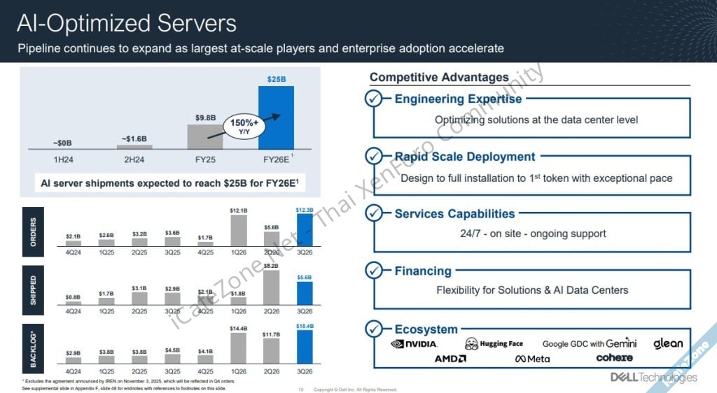 Dell Technologies รายงานผลประกอบการประจำไตรมาสสิ้นสุดวันที่ 31 ตุลาคม 2025 มีรายได้ 27,005 ล้านดอลลาร์ เพิ่มขึ้น 11% จากช่วงเดียวกันในปีก่อน มีกำไรสุทธิตามบัญชี GAAP เพิ่มขึ้นเป็น 1,548 ล้านดอลลาร์