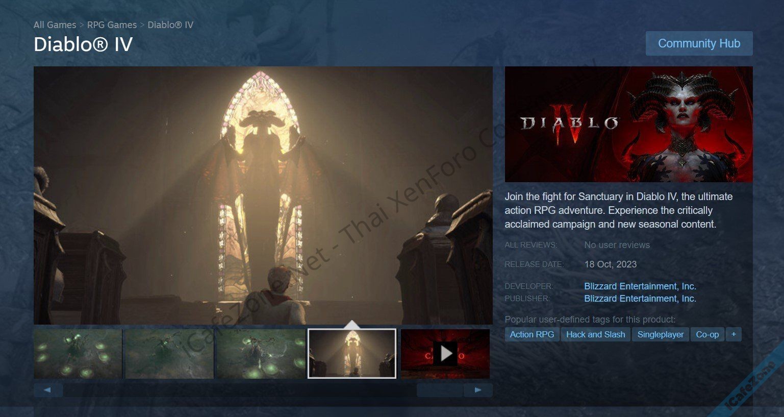 Blizzard นำเกม Diablo IV มาลงขายใน Steam โดยตอนนี้มีหน้าเพจบน Steam แล้ว เริ่มขายวันที่ 18 ตุลาคม 2023 ตามเวลาบ้านเรา ส่วนราคาบน Steam (โดยเฉพาะราคาไทยที่มักถูกกว่าราคาต่างประเทศ) ยังไม่ประกาศ