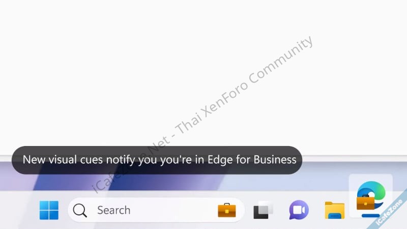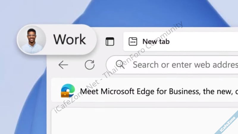Microsoft Edge for Business เวอร์ชันสำหรับบัญชีองค์กร ตามที่ประกาศไว้ในงาน Build 2023 สามารถรันคู่พร้อมกับ Edge เวอร์ชันปกติได้ โดยมีสัญลักษณ์รูปกระเป๋าที่ไอคอน e ในทาสก์บาร์ และมีโปรไฟล์ Work แสดงที่มุมซ้ายบนของหน้าต่าง