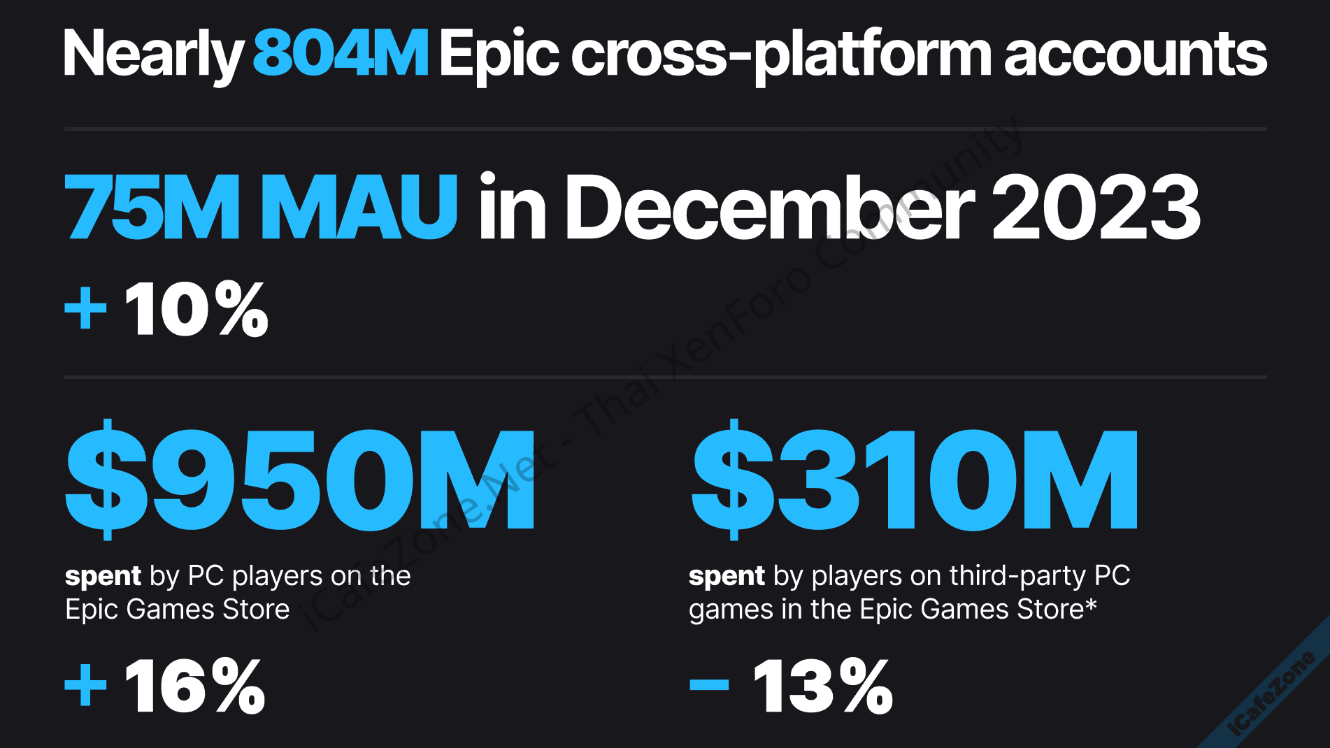 - ถ้านับสถิติการใช้งานบัญชี Epic ทั้งหมด (รวมพวกในเกม Fortnite ด้วย) มีทั้งหมด 804 ล้านบัญชี