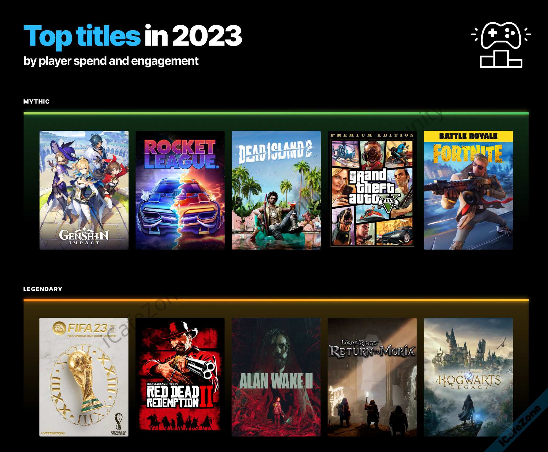 - มูลค่าการใช้จ่ายของผู้เล่น 950 ล้านดอลลาร์ เพิ่มขึ้น 16% จากปี 2022 แต่สัดส่วนการใช้จ่ายกับเกมของนักพัฒนารายอื่นลดลง 13% (แปลว่าจ่ายให้เกมของ Epic เยอะขึ้น)