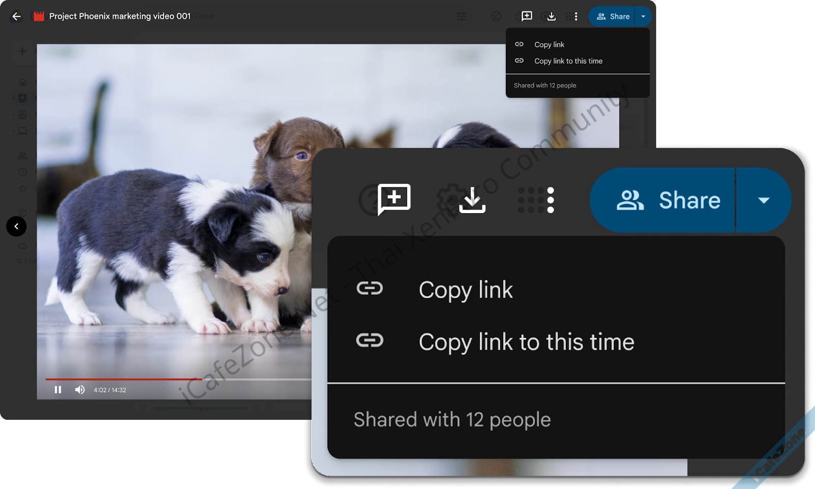 กูเกิลยังเพิ่มอีกฟีเจอร์ของการแชร์ใน Google Drive โดยเมื่อแชร์ไฟล์ที่เป็นวิดีโอ จะมีตัวเลือกเพิ่มเติมคือการแชร์แบบระบุตำแหน่งเวลาของวิดีโอนั้น อัพเดตนี้ได้ทั้งลูกค้า Google Workspace และผู้ใช้งานบัญชีกูเกิลทุกคนเช่นกัน
