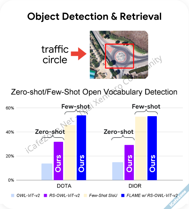 ตัวอย่างการใช้งานโมเดลค้นหาภาพ Imagery คือ เราสามารถใช้คำค้นที่เป็นภาษาธรรมชาติ เช่น ค้นหารูปวงเวียนด้วยคำว่า traffic circle แล้วโมเดลจะเข้าใจว่าเราต้องการอะไร เพื่อตามหารูปวงเวียนให้ได้ทันที