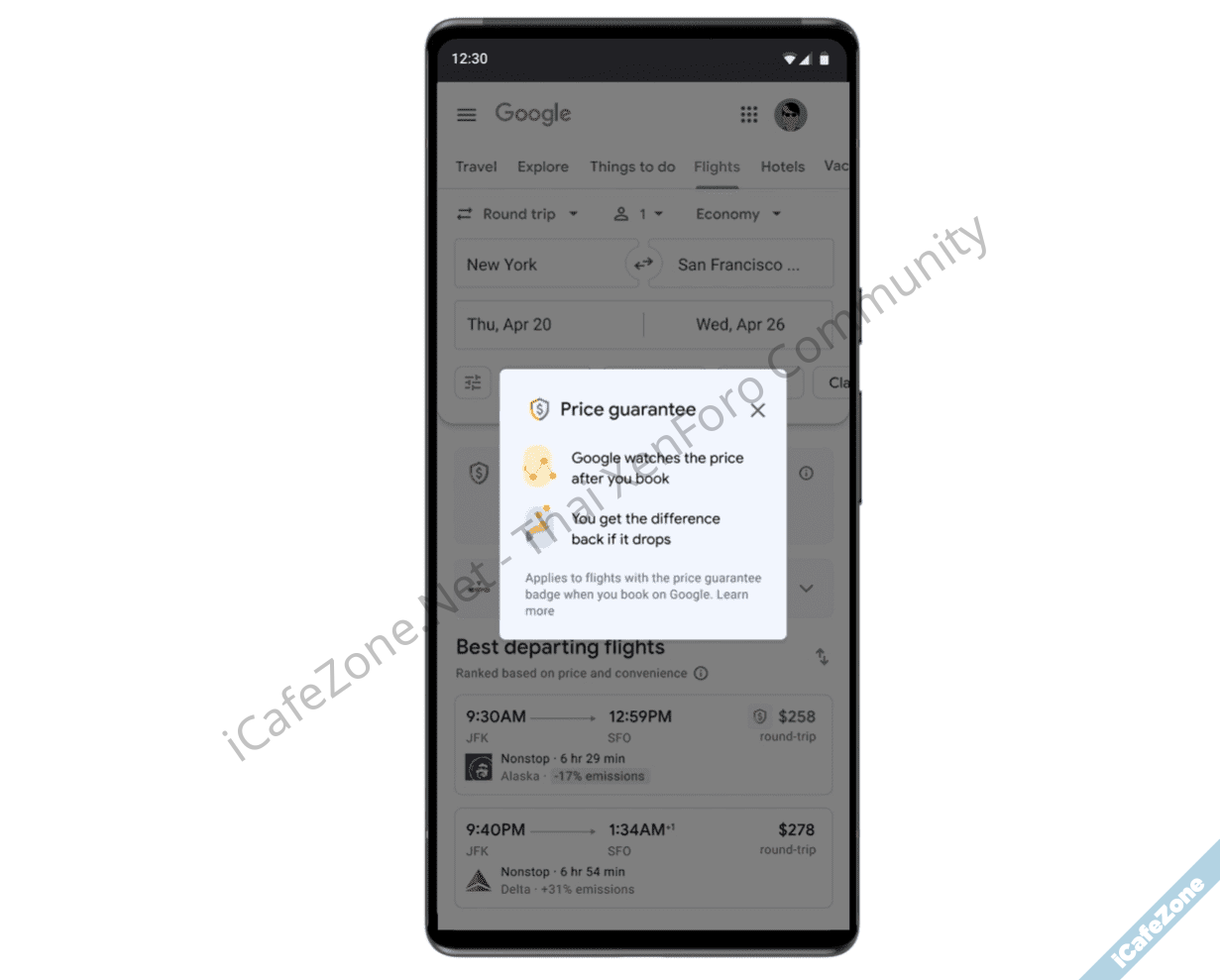 แต่ล่าสุด Google Flights เพิ่มความสามารถใหม่ แสดงราคาตั๋วที่ต่ำที่สุด พร้อมแปะป้ายการันตีราคา (price guarantee) ให้ด้วย เพื่อยืนยันว่าตั๋วราคานี้จะถูกที่สุดแล้วไม่มีปรับลงอีก และหากราคาตั๋วยังลดลงกว่าที่กดซื้อ กูเกิลยินดีจ่ายส่วนต่างคืนให้ผ่าน Google Pay ในภายหลังด้วย (ต้องเป็นการซื้อผ่านกูเกิล Book on Google เท่านั้น)