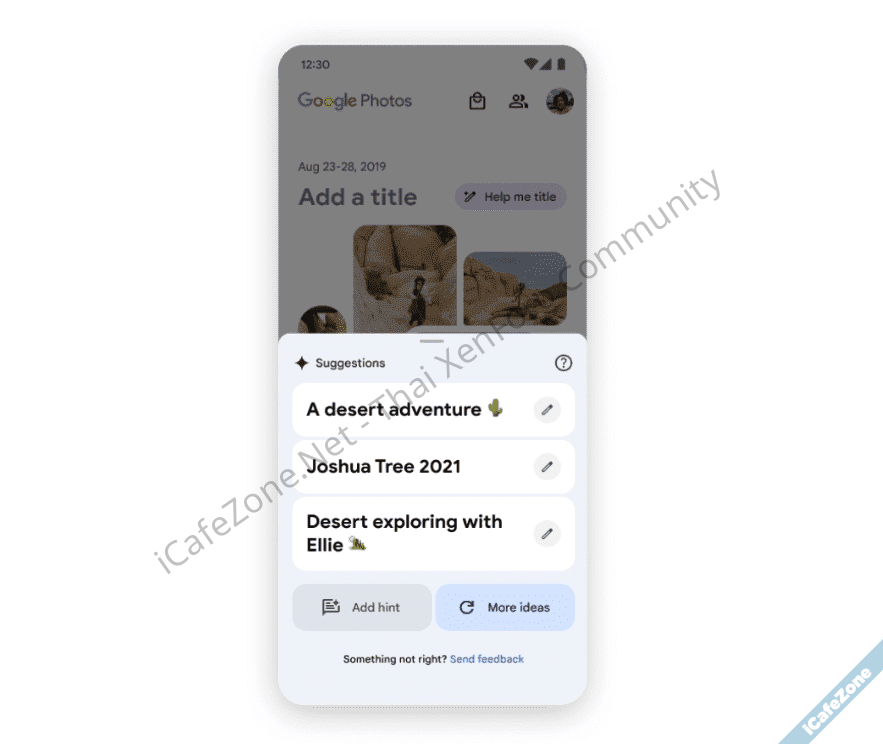 ฟีเจอร์ใหม่อีกอันที่น่าสนใจคือ ใช้ AI ช่วยตั้งชื่อ memories โดยอิงจากภาพและข้อมูลสถานที่ในภาพ รูปแบบคือมีปุ่มไม้กายสิทธิ์ Help me title แบบเดียวกับใน Gmail/Google Workspace ขึ้นมาให้กด แล้ว AI ของกูเกิลจะสร้างชื่อมาให้เลือก 3 แบบ ซึ่งเราสามารถเปลี่ยนหรือแก้ไขได้ด้วย