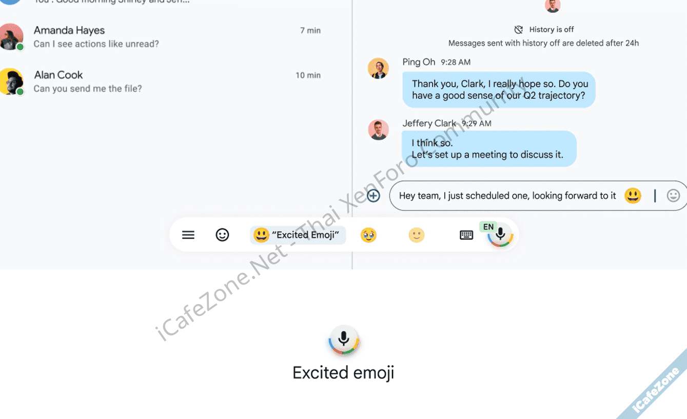 - การใช้แท็บเล็ต Pixel แล้วสั่งพิมพ์ด้วยเสียงพูด ตัวคีย์บอร์ด Gboard จะหดขนาดลงเพื่อไม่ให้บังหน้าจอเกะกะ