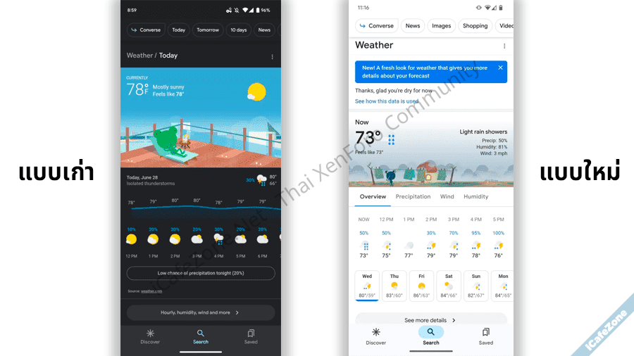 Google Search เริ่มอัปเดตการแสดงผลสภาพอากาศบนสมาร์ทโฟนแบบใหม่ (พิมพ์ weather ในช่อง search บนสมาร์ทโฟน) ปรับไปใช้ Material You ตามสมัยนิยม พร้อมปรับการแสดงผลกราฟิกของสภาพอากาศปัจจุบัน ให้มีความสวยงามมากขึ้น