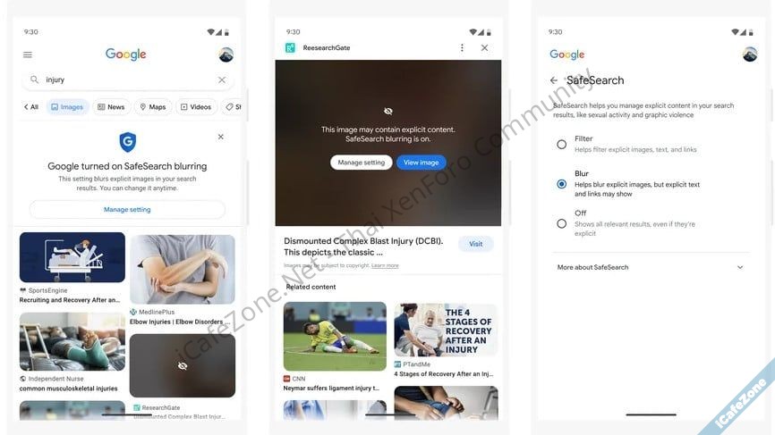 ฟีเจอร์อีกตัวที่ประกาศพร้อมกันคือ Google SafeSearch ตัวกรองผลการค้นหาที่ปลอดภัย เพิ่มการเบลอภาพที่ไม่เหมาะสม เช่น เนื้อหารุนแรง มีเลือดหรืออาการบาดเจ็บ เนื้อหาสำหรับผู้ใหญ่ เพื่อให้การค้นหาใน Google Image Search ดูไม่น่ากลัวจนเกินไป (หรือการใช้งานในโรงเรียนที่มีเด็ก) ฟีเจอร์นี้จะเปิดใช้งานทั่วโลกในเดือนนี้