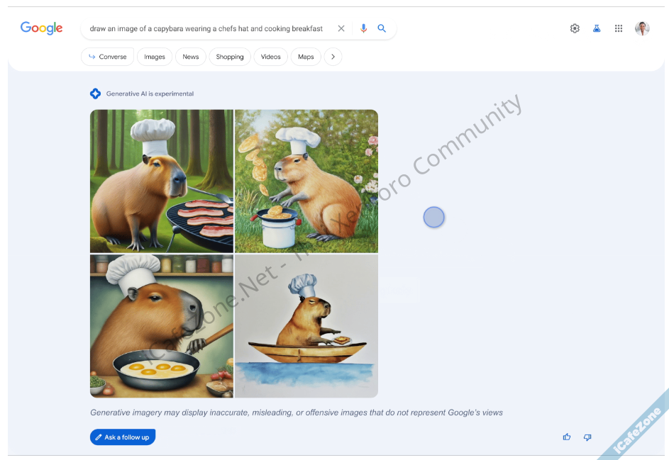 ล่าสุดกูเกิลประกาศเพิ่มฟีเจอร์สร้างรูปภาพ (image generator) ให้กับ SGE วิธีใช้งานคงไม่ต่างจาก AI สร้างภาพตัวอื่นๆ ที่ต้องพิมพ์คำสั่ง prompt ระบุว่าต้องการสร้างภาพอย่างไร