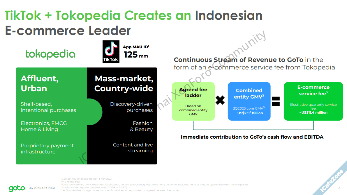 Jacky Lo ซีเอฟโอกลุ่ม GoTo กล่าวว่าความสามารถการทำกำไรของบริษัทดีขึ้นในไตรมาสที่ 4 ของปี 2023 ธุรกิจออนดีมานด์มี EBITDA เป็นบวก เช่นเดียวกับธุรกิจอีคอมเมิร์ซ ที่ได้เงินสนับสนุนเพิ่มจากข้อตกลงกับ TikTok จึงประเมินว่าบริษัทจะมีกำไรแบบ EBITDA รวมเป็นบวกในปี 2024