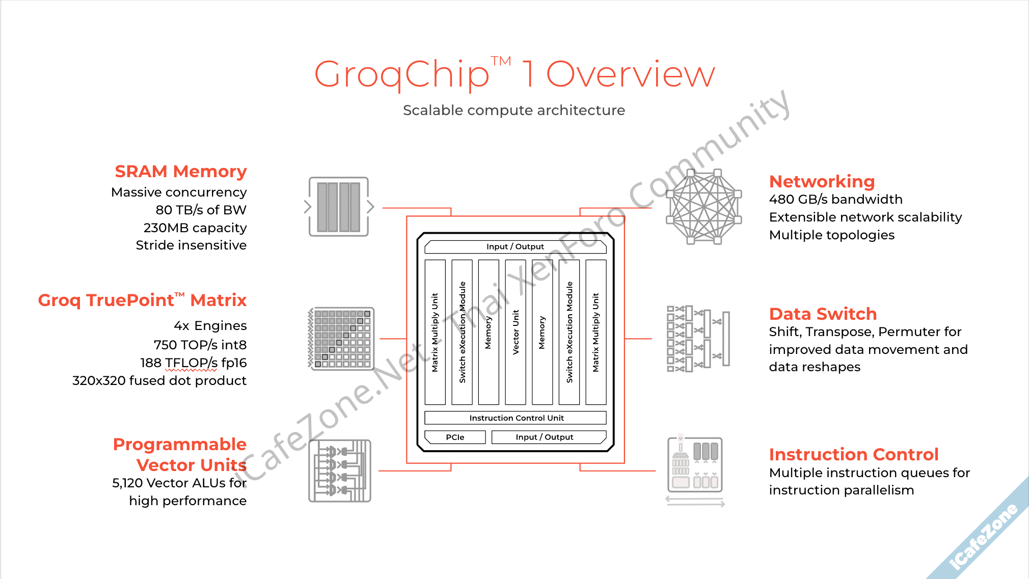 ชิป GroqChip 1 นั้นทาง Groq เรียกว่าเป็น LPU หรือ language processing unit จุดแตกต่างคือในชิปมี SRAM มากถึง 230MB สำหรับการรัน AI โดยเฉพาะ สถาปัตยกรรมโดยรวมเรียบง่ายกว่าชิปกราฟิก